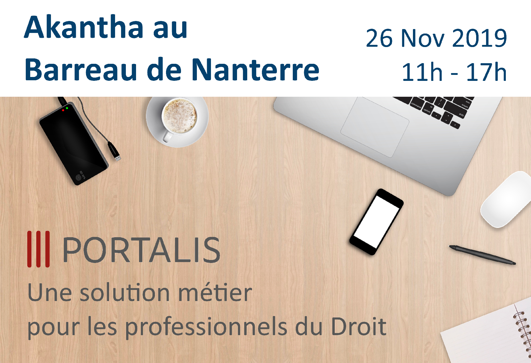Akantha sera présent au Barreau de Nanterre le 26 novembre 2019 (179 avenue Frédéric et Irène Joliot Curie 92000 Nanterre). En particulier, Akantha y présentera sa solution Portalis et ses outils de gestion des procédures juridiques.Vous avez une question sur ce sujet...